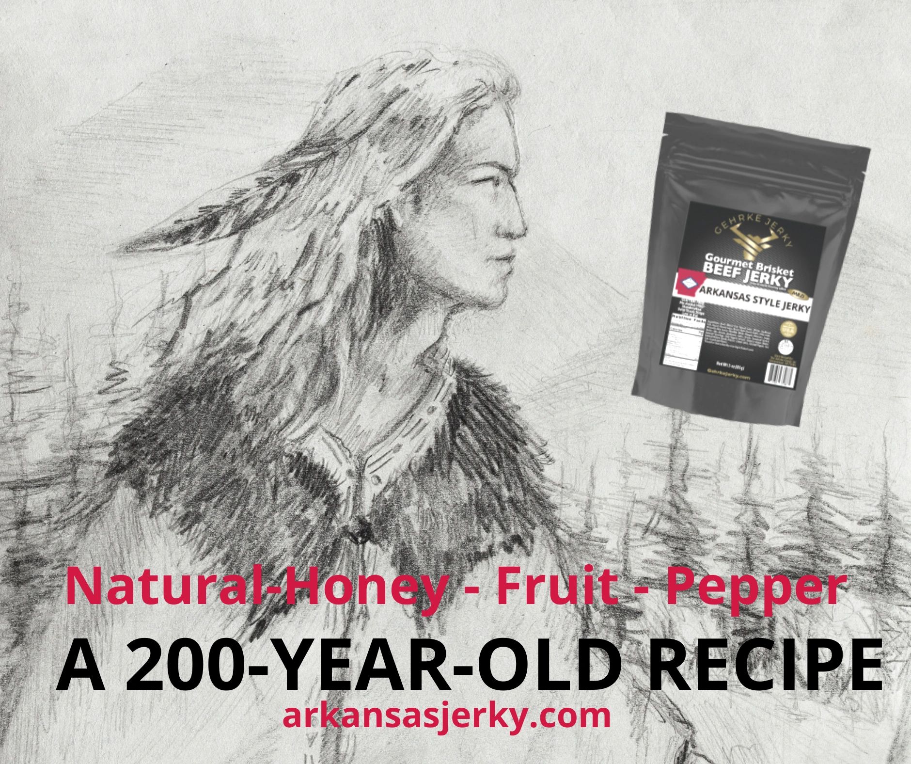 We discovered a delicious 200-year-old jerky recipe made with old-time natural ingredients like honey, molasses, fruit, and peppers similar to what the Ozark settlers probably made.